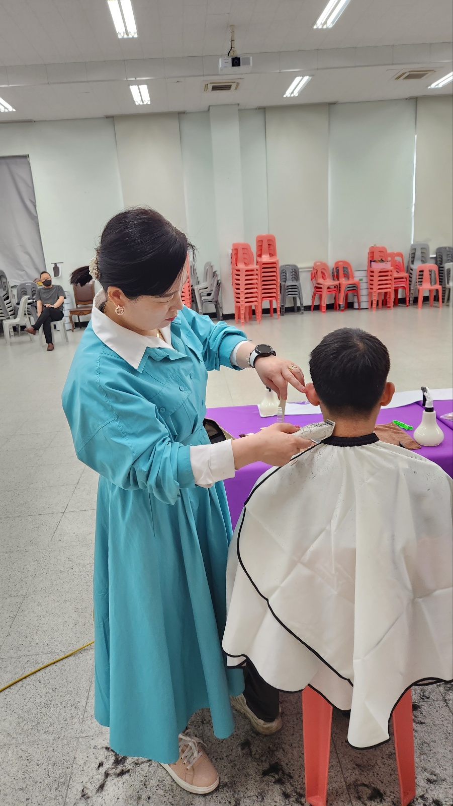 ○ 이날 봉사단 인원 구성은 군특성상 최대 6명의 인원이 제한됨에 따라 빛솔미용봉사단 4헤어 교수님 2이 참석해 지도를 하였다