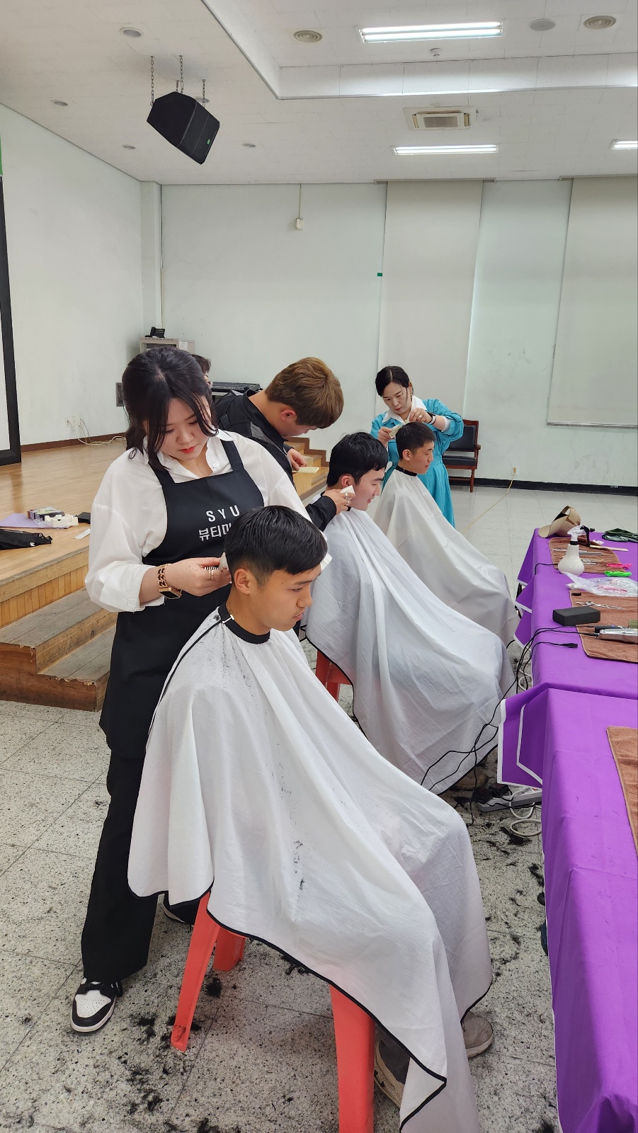 ○ SYBG-빛솔미용봉사단(지도교수 유은미)은 전남 담양에 위치한 제 11공수특전여단에서 헤어 커트 봉사를 진행하였다.