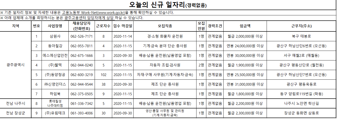 오늘(9월 17일) 신규 일자리 입니다.에 대한 상세정보