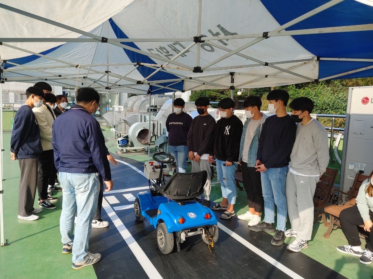 예비 자동차과 학생들을 만나는 자리에 자동차과 동아리 중 하나인 튜닝-X 동아리 학생들이 도와주었습니다!