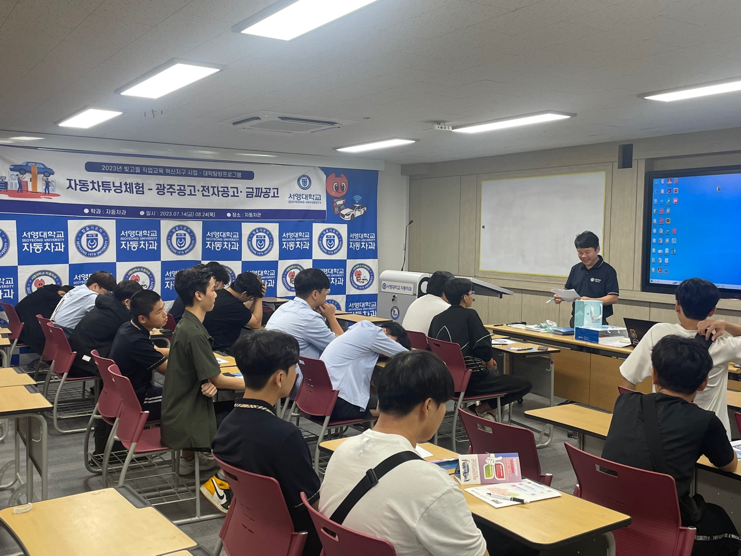 서영대학교는 광주시와 광주시교육청이 주관하는 ‘2023년 빛고을 직업교육 혁신지구 사업’의 일환으로 광주공업고등학교 SMART JOB PROJECT 동아리 학생들을 대상으로 자동차튜닝체험 활동을 실시했다고 14일 밝혔다.