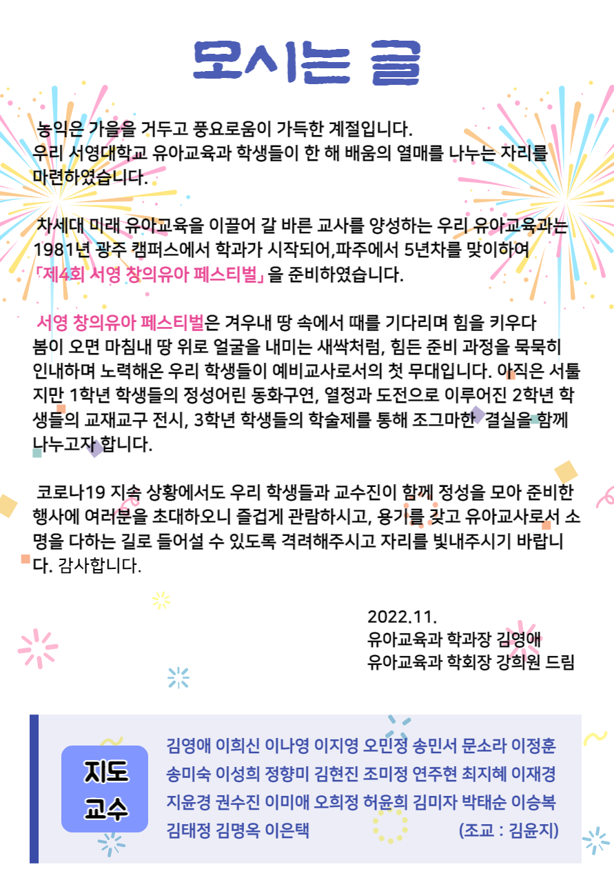 제 4회 서영 창의유아페스티벌 리플렛입니다.