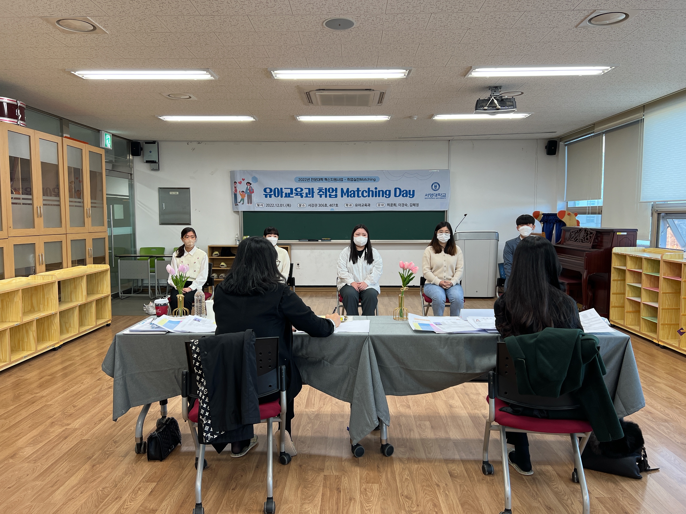 - 내용 : 취업을 앞둔 예비교사 3학년들이 취업Matching Day를 통해 면접관님들과 모의면접을 진행하고, 이력서 및 자기소개서 작성법 및 피드백을 들어보았습니다.