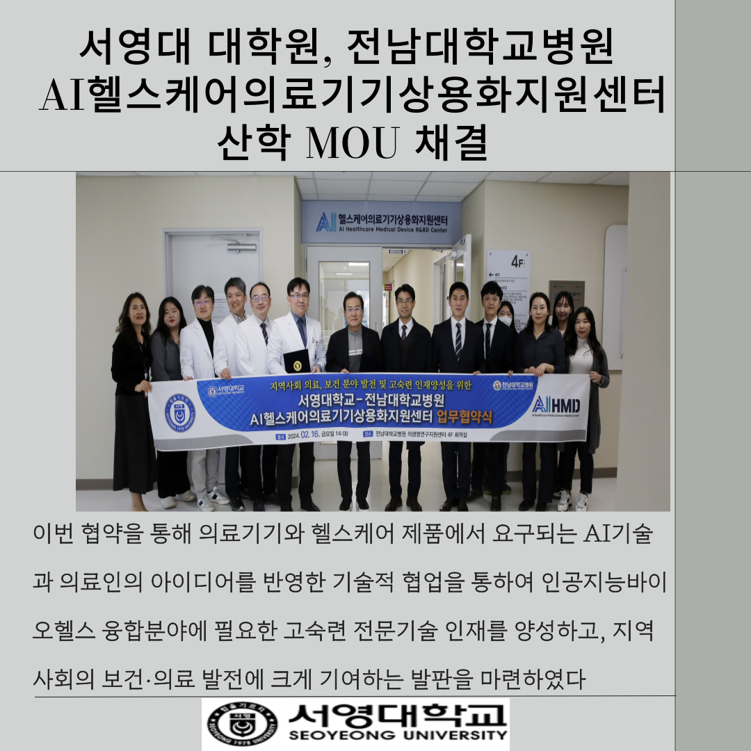 서영대 대학원, 전남대학교병원 AI헬스케어의료기기상용화지원센터과 산학 MOU 채결
