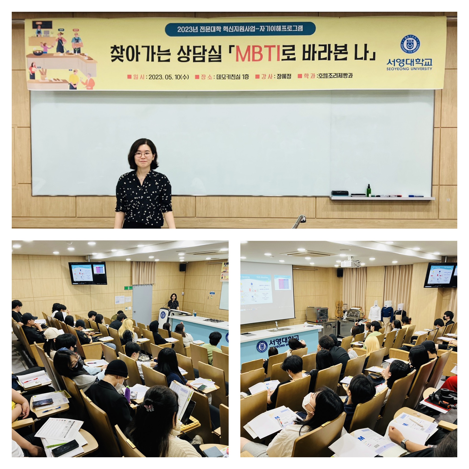 ○ MBTI 특강은 23년 전문대학 혁신지원사업-자기이해 프로그램으로 실시되었으며, MZ 세대들이 즐겨 말하는 성격 데스트를 하는 유익한 시간이었습니다.