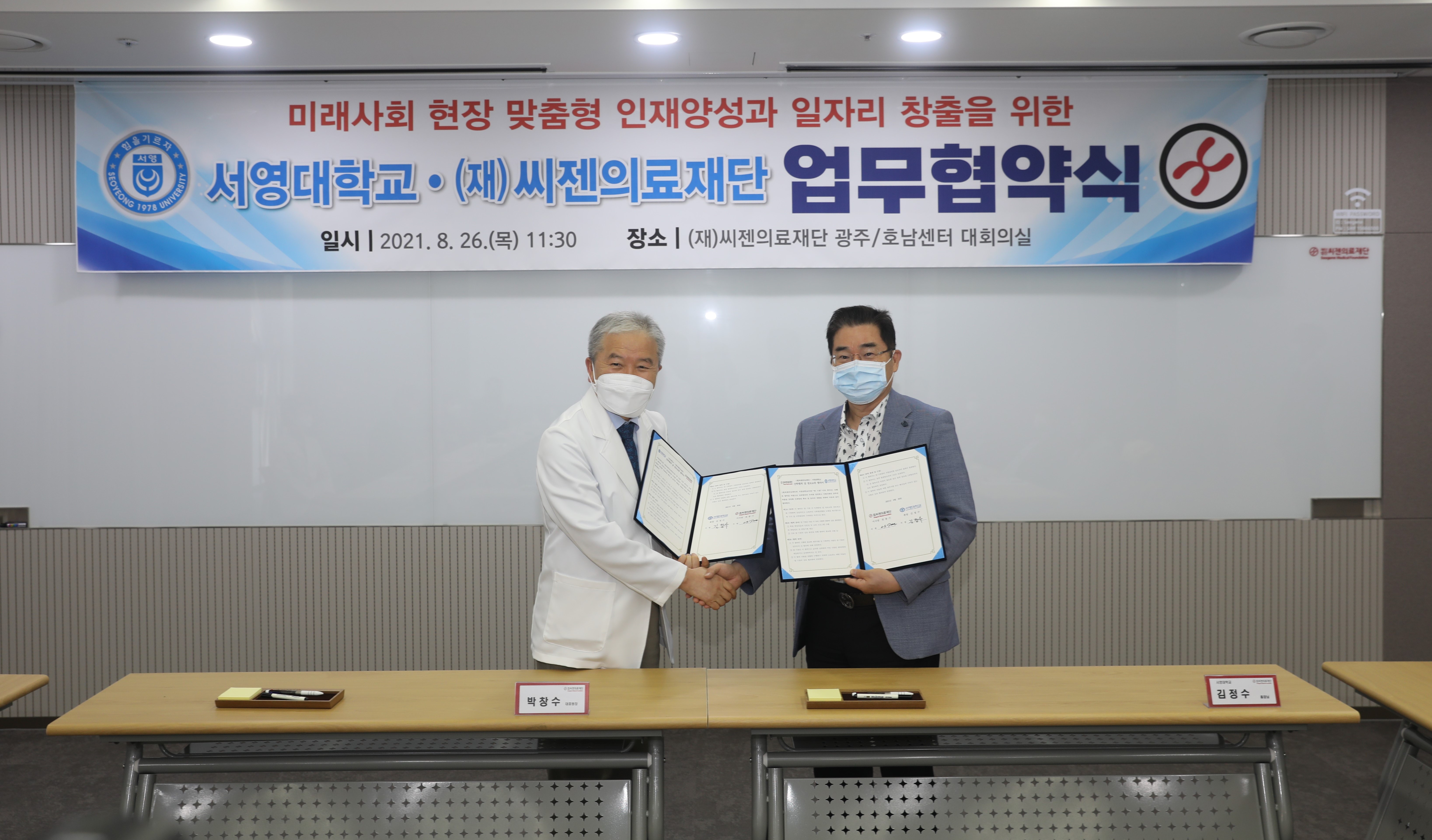 서영대 김정수 총장은글로벌 질병검사 전문기관과의 업무협약을 통해 우리대학 임상병리과 학생들의 취업역량을 넓힐 수 있는 좋은 기회를 마련하게 됐다향후 최신 검사시스템과 질병진단을 위한 첨단진단 인프라를 구축한 씨젠의료재단이 질병예방의 글로벌 우수기업으로서 끊임없이 성장하길 바란다고 말했다.