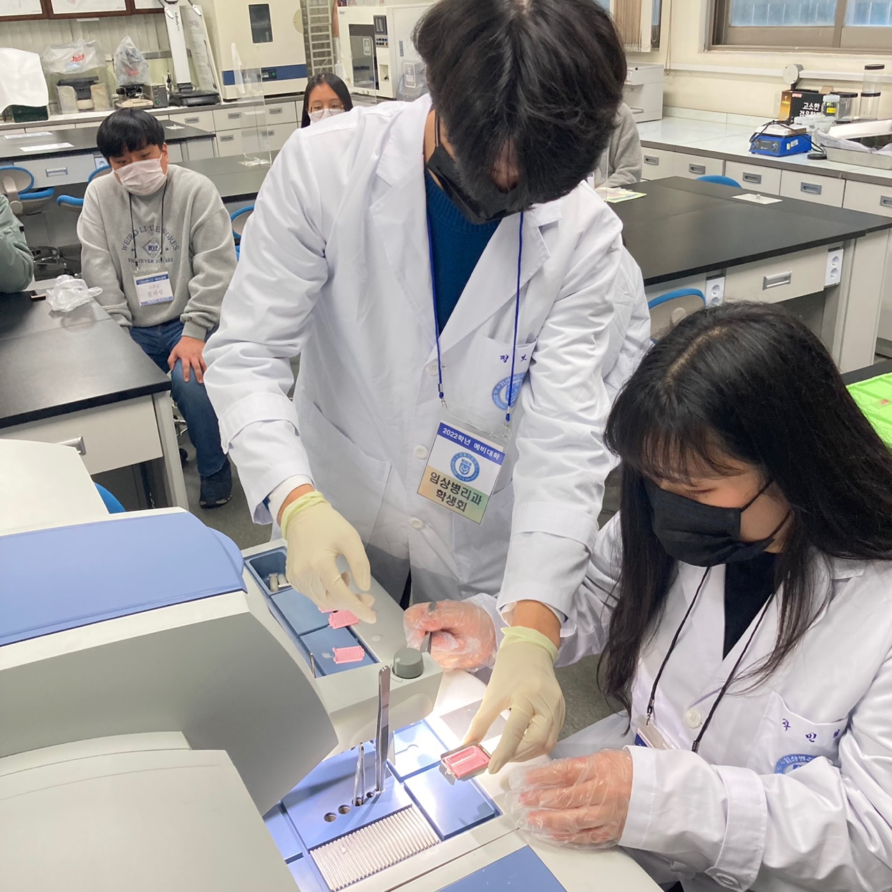 예비대학 프로그램에서는 학과소개. 교수님 소개, 학과의 장점 및 비전을 안내하였고, 각 실험실습실에서 임상병리사의 업무(혈액, 수혈 검사, 조직병리학검사, 미생물검사, 검시조사)를 직접 시연하고, 체험해 볼 수 있는 기회를 마련하였습니다.