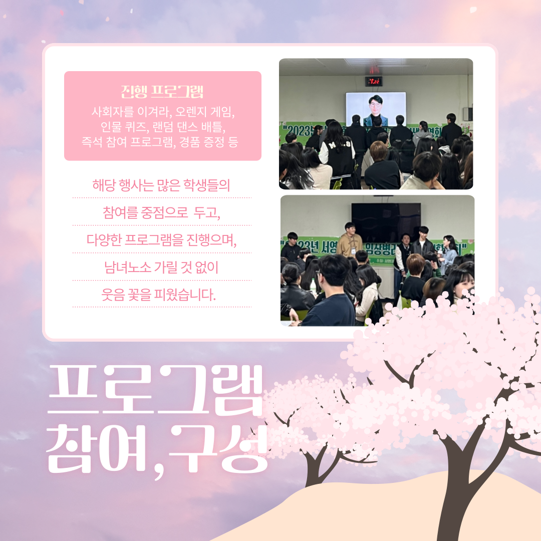 2023학년도 임상병리과 새내기들의 입학을 환영하고 선후배사이의 돈독한 정을 새기기 위한 임상병리과 신입생 환영행사를 운암관에서 가졌습니다. 새로운 입학생들을 환영하고 선배님들의 대학생활에 정보를 나누는 의미있는 시간이 되었으며, 학과발전을 위한 만남의 장을 마련하게 되었습니다. 서영대학교 임상병리과 새내기 여러분들의 멋진 대학생활을 응원합니다~~서영대학교 임상병리과 화이팅!