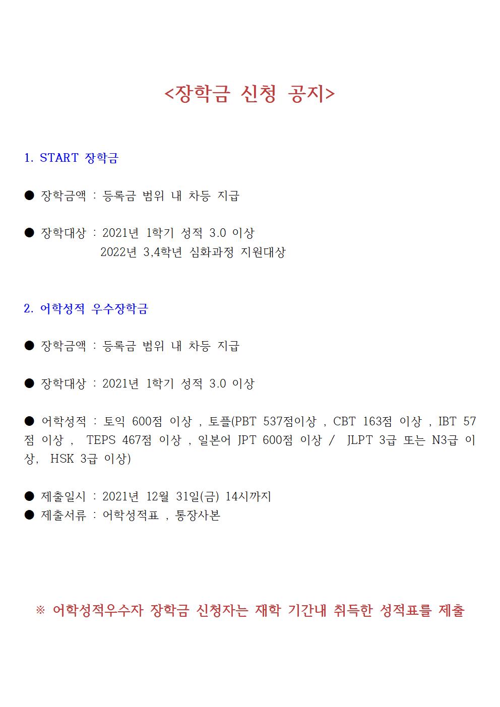 2021년도 추가 장학금 신청!