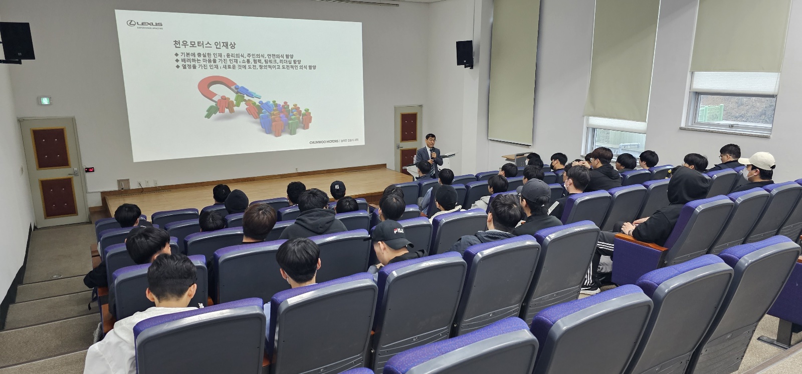천우모터스(주) 서비스총괄 조*철 전무이사님께서 미래자동차과 재학생들을 위한