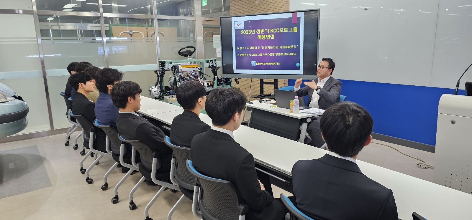 2023년 5월 10일 KCC오토그룹 정*환 서비스총괄 전무이사님께서 하계 인탄십 채용면접을 진행하였습니다.