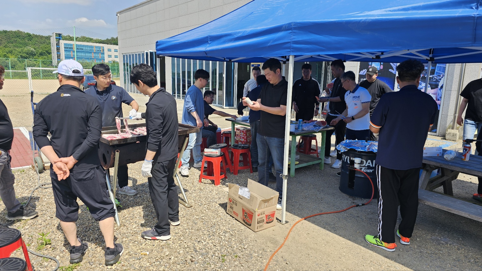 미래자동차과 1학년 군.산업체위탁과정 A,B빈과 1학년 4반 학생들 연합 단합 대회를 진행하였습니다. 종목은 족구로 진행되었으며, 경기 진행은 토너먼트 방식이고, 1학년 군.산업체위탁과정 A,B빈 연합팀, 1학년 4반 2팀, 교수님 팀 등 4팀 참여했습니다. 더운 날씨에도 모두 승부욕을 불태우며 안전하고 즐겁게 열심히 경기를 뛰었습니다. 이번 기회에 모두가 친목을 통해 단합을 할 수 있었기에 뜻 깊은 시간이었으며 체육 활동 후 간단한 바비큐 파티를 진행하였습니다. 이번 단합 대회를 통해 모두가 친해질 수 있었기를 바라며 "미래자동차과"는 더욱 발전해갑니다!