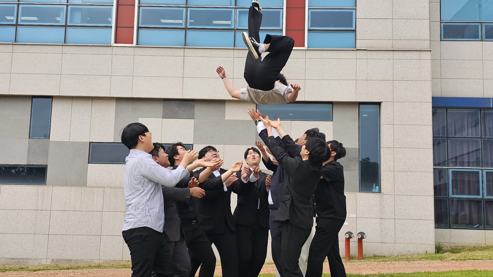 미래자동차과 2학년 재학생이 졸업 사진을 찍었습니다.