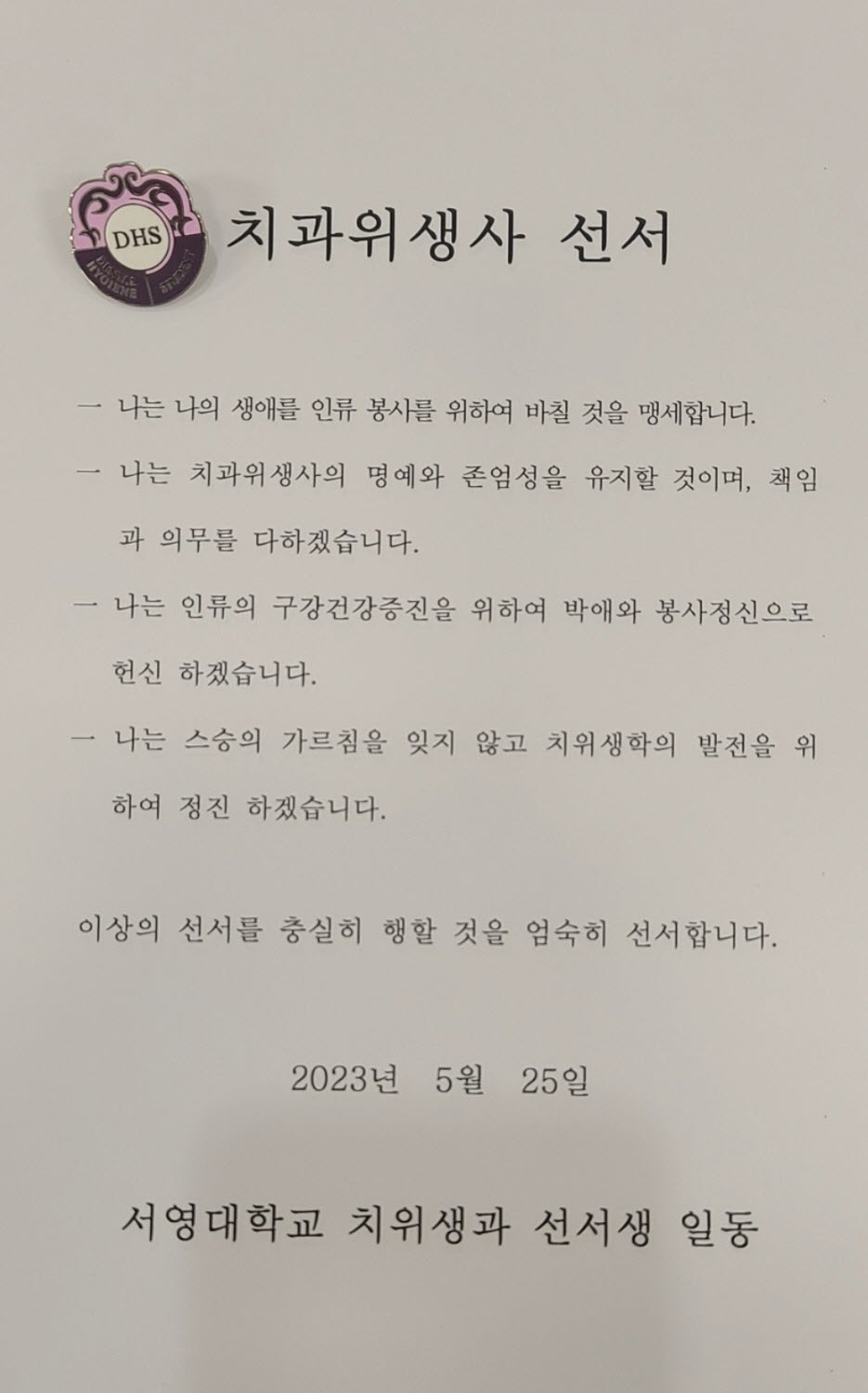 치과위생사로서의 사명과 직업윤리를 다짐하는 시간이었습니다.