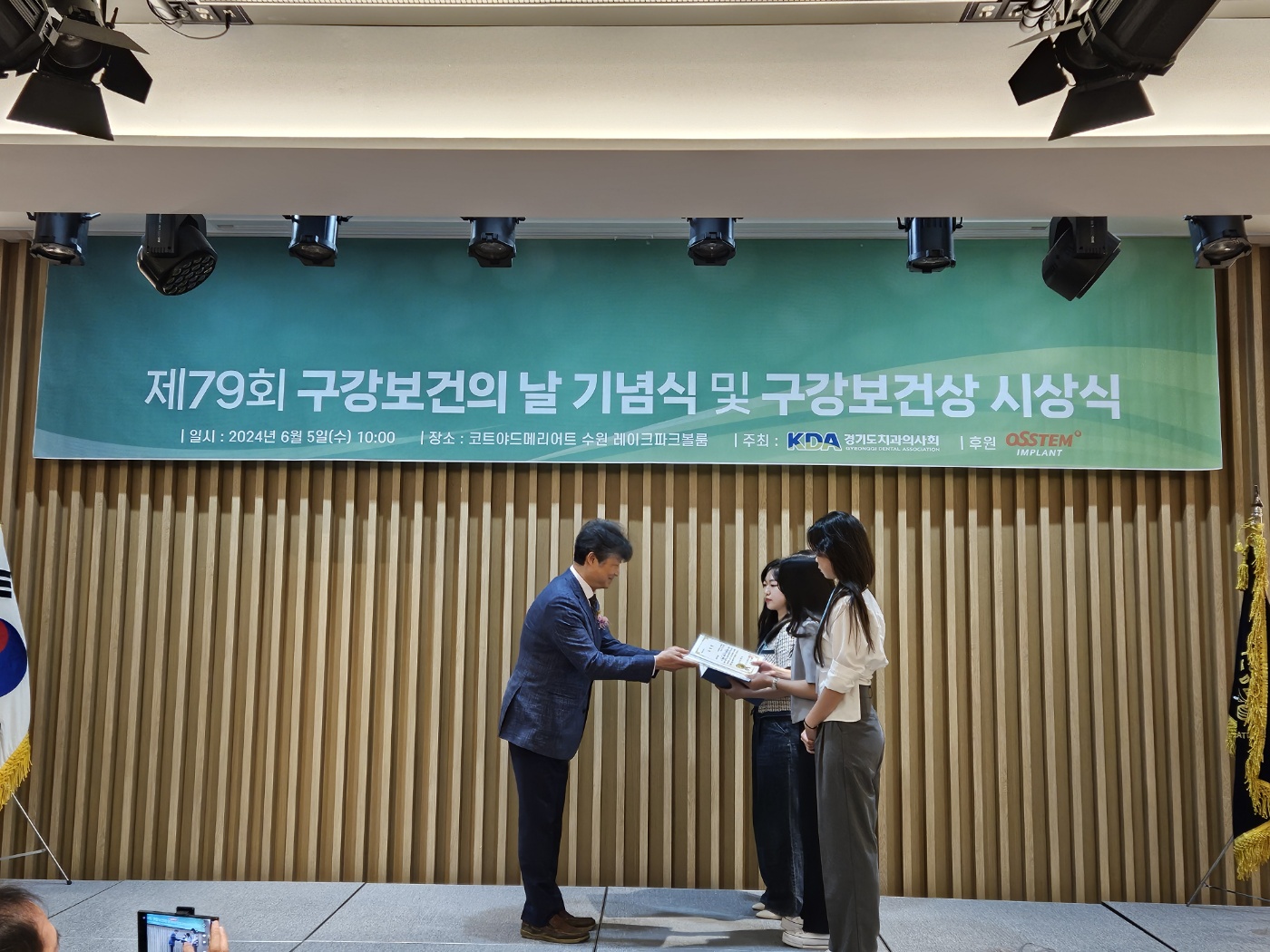 제 79회 구강보건의 날 기념식 및 구강보건상 시상식에서 2학년 송*서, 박*해, 김*주 학생이