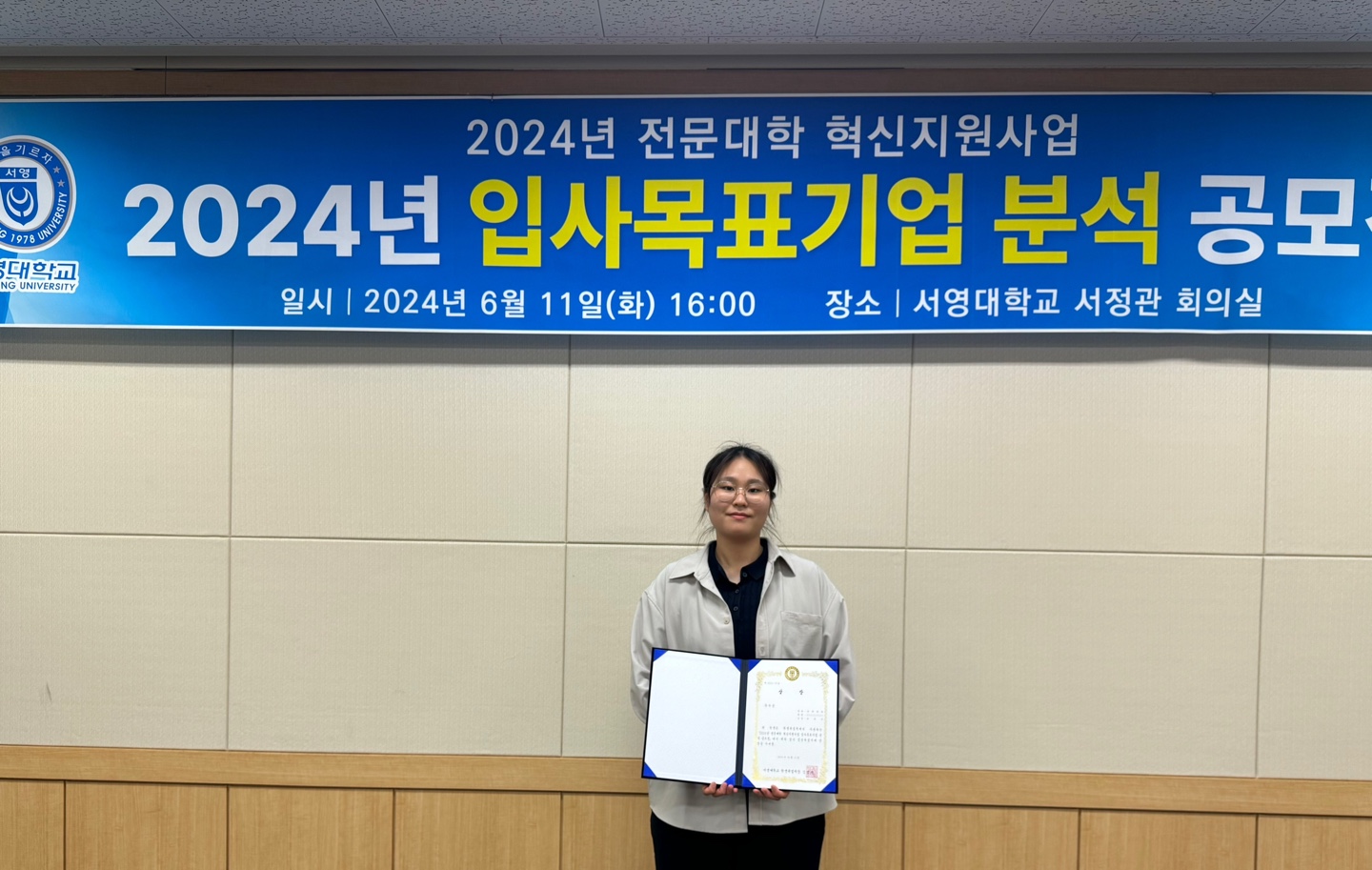 3학년 안*나 학생이 입사목표기업 분석 공모전에서 우수상을 수여받았습니다 ^ㅡ^! 축하합니다!