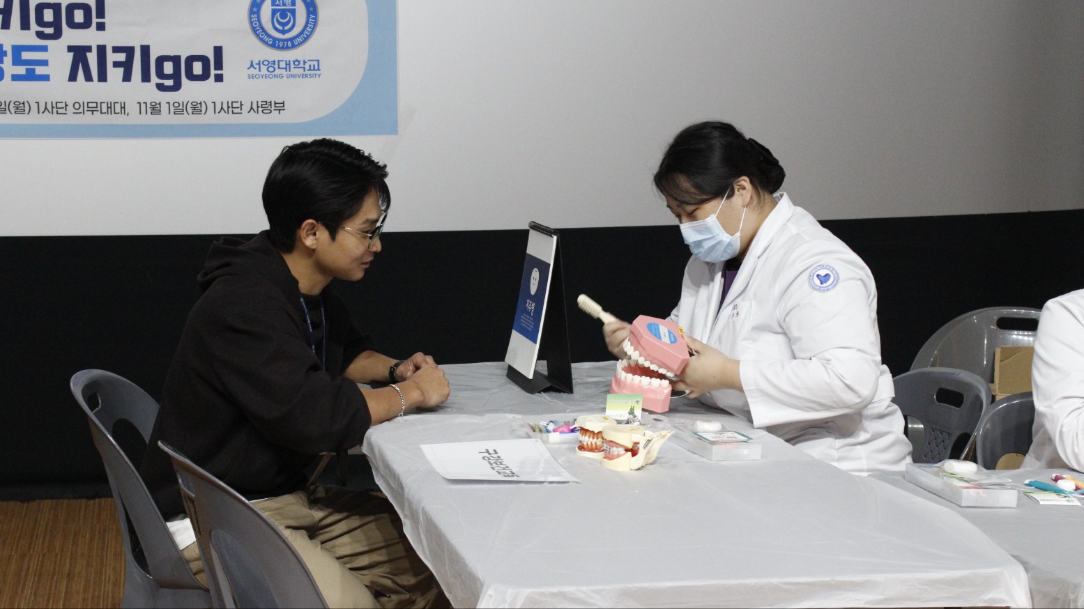 2024년 11월 1일 (금) 파주시 군장병을 대상으로 치면세균막검사,. 구강미생물검사. 구취검사 등을 진행하고 1:1 맞춤형 구강관리방법을 교육하였습니다 !!