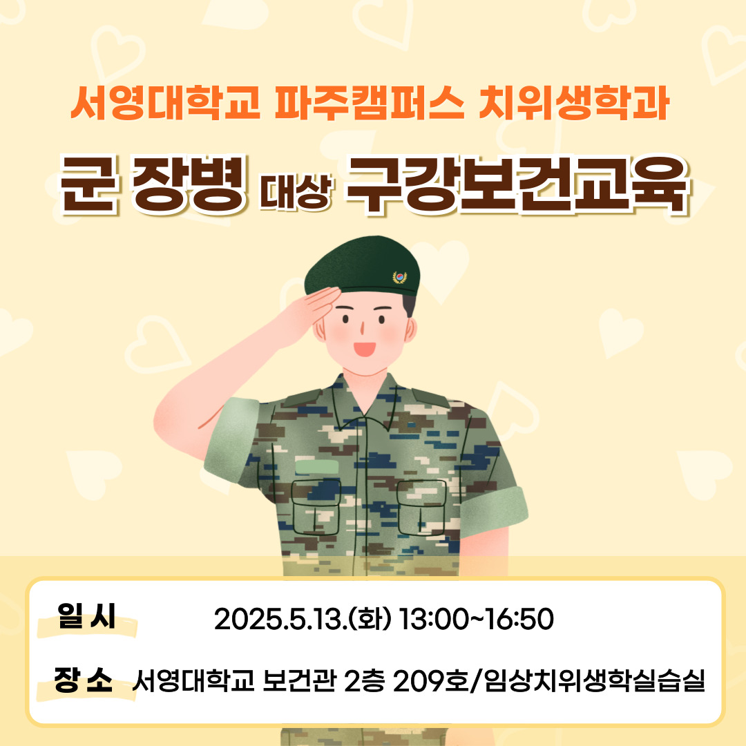 지역사회 봉사활동의 일환으로 파주시 군장병 대상 구강보건교육이 진행됩니다 ^^