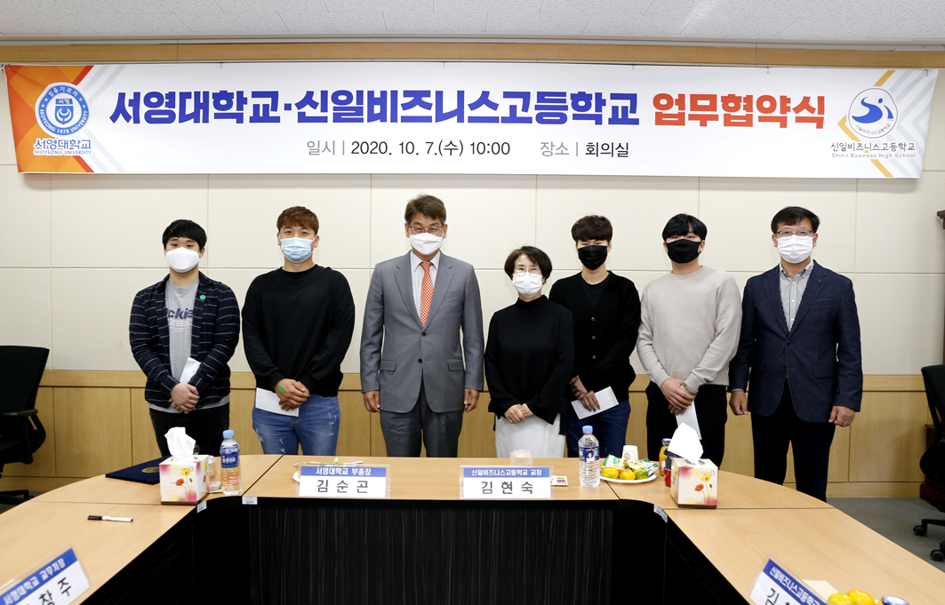 소방안전과 ( 학과장 천종철 )는  10월 7일,  신일 비지니스 고등학교와 우수인재 발굴 을 위해  양 기관이 협업하여 노력하는 업무협약을 추진하였다.