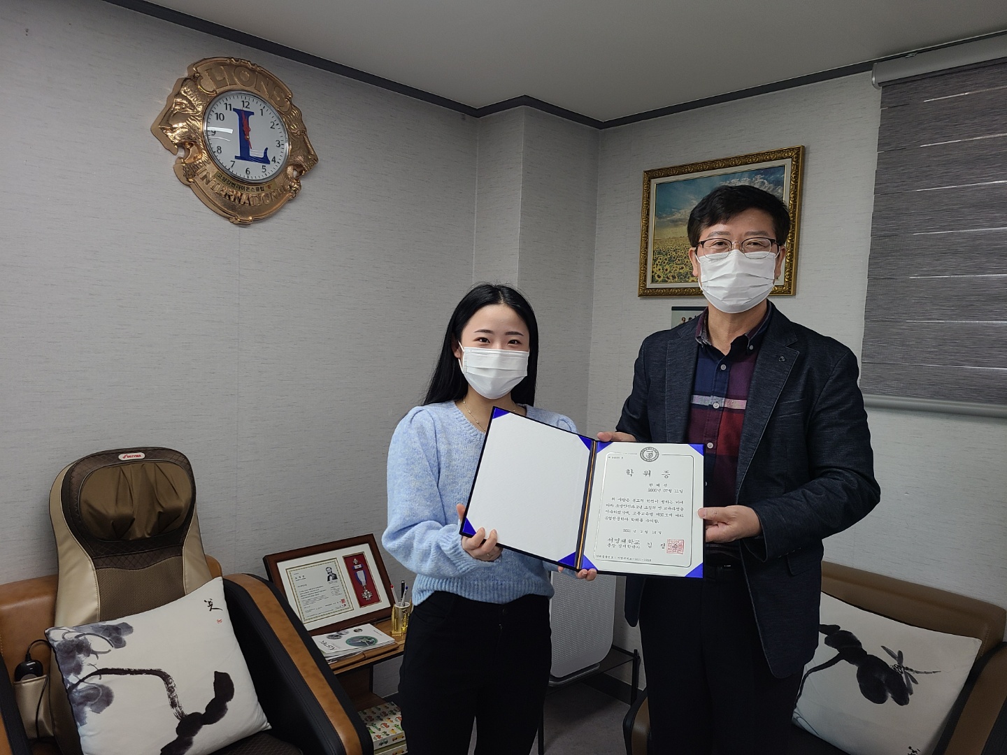 우리학과에 취업 및 현장실습에 협조가 큰 강대표님에게 공로패를 전달하였고