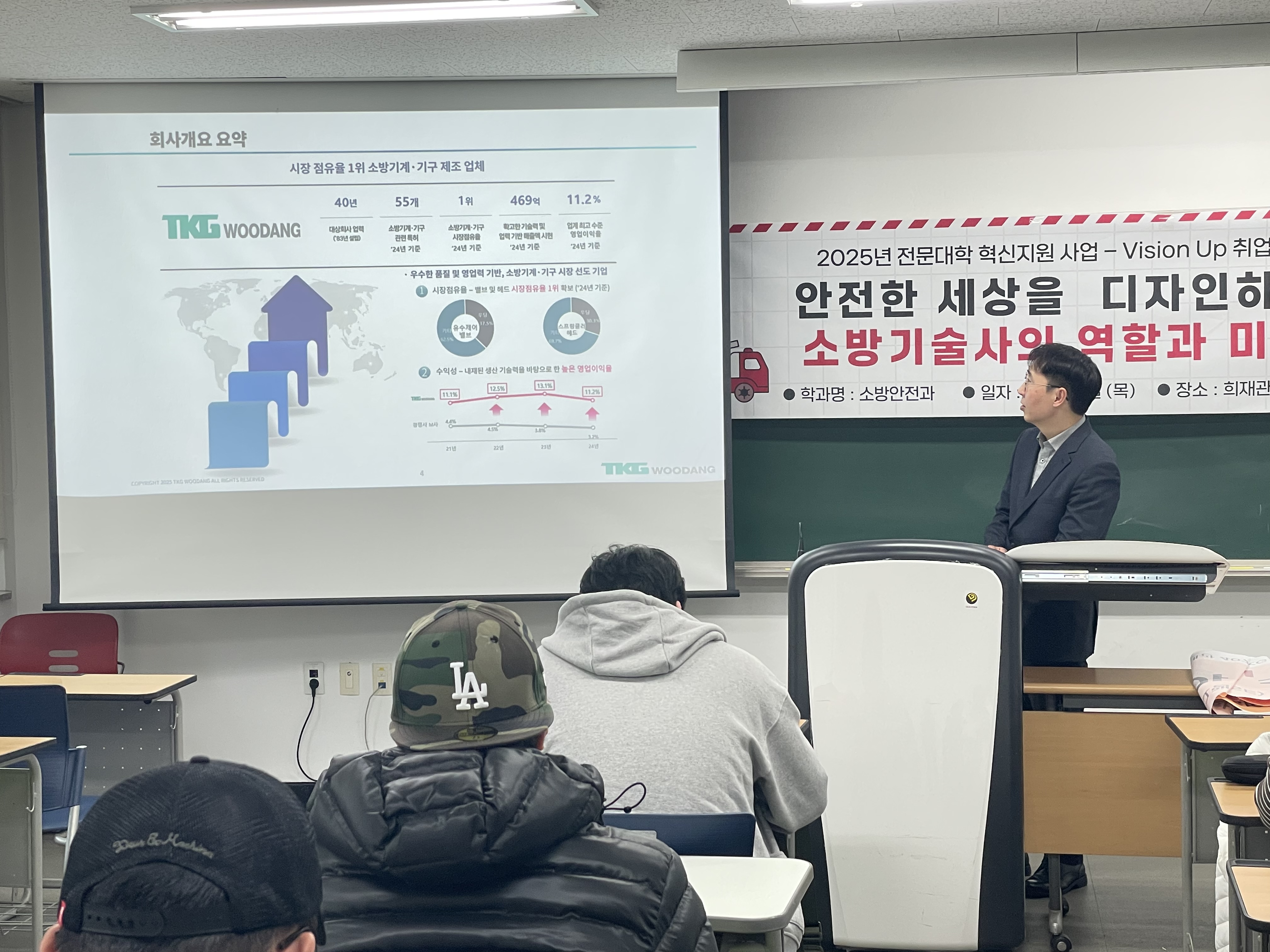 소방기술사 ( TKG 우당 _ 오성수 부장님) 을 초청하여 소방산업의 미래와 소방기술자의 역할과 비전을 함께 나누어 주셨어요 .