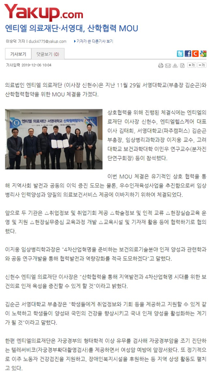 신현수 엔티엘 의료재단 이사장은 “산학협력을 통해 지역발전과 4차산업혁명시대를 위한 보건의료 인재 육성을 증진시킬 수 있을 것"이라고 이라고 밝혔다.