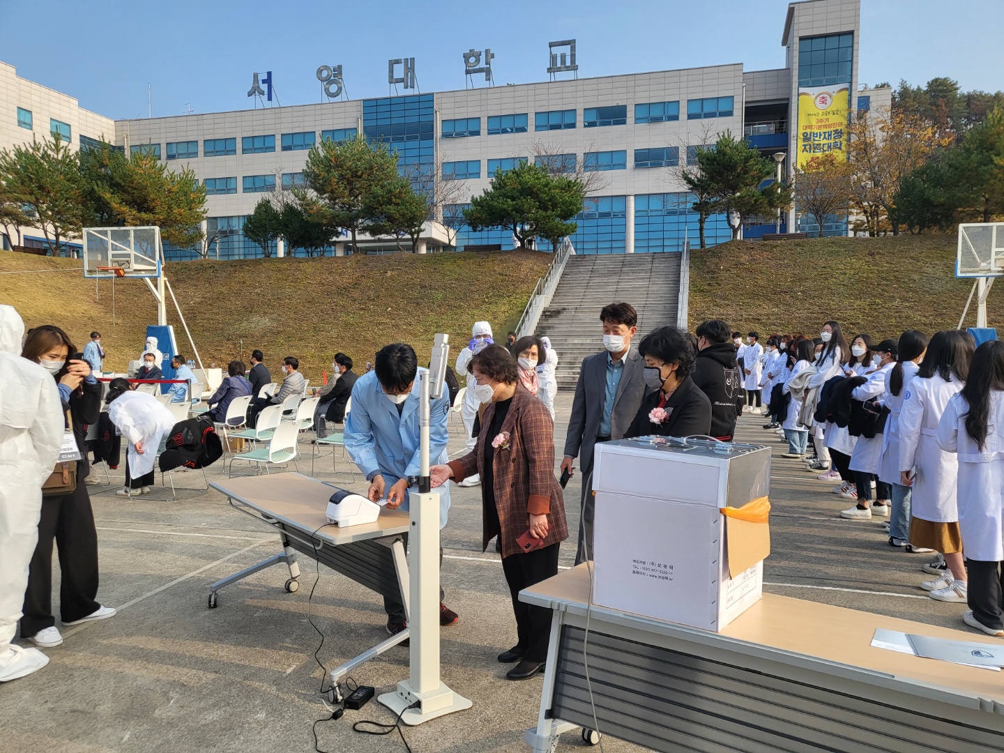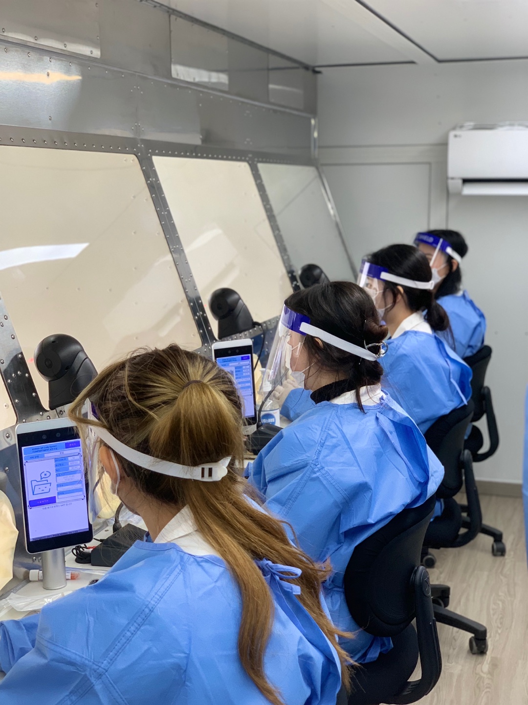또한, 전국에서 유일하게 서영대학교 임상병리과 재학생들이 미래 의생명 과학자로서 직접 스마트 이동형 선별진료 차량에 탑승하여