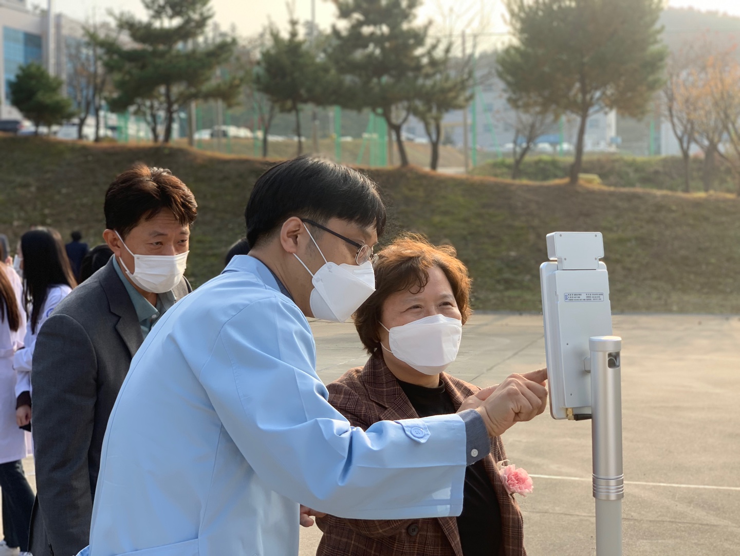 행사는 임상병리과 김아름 교수 사회로 1, 2부의 공동연구개발 목적 및 소개에 관한 프리젠테이션에 이어, 3부에서의 테이프 커팅식 및 스마트 이동형 선별진료 & 백신접종시스템시연회로 진행되었다.