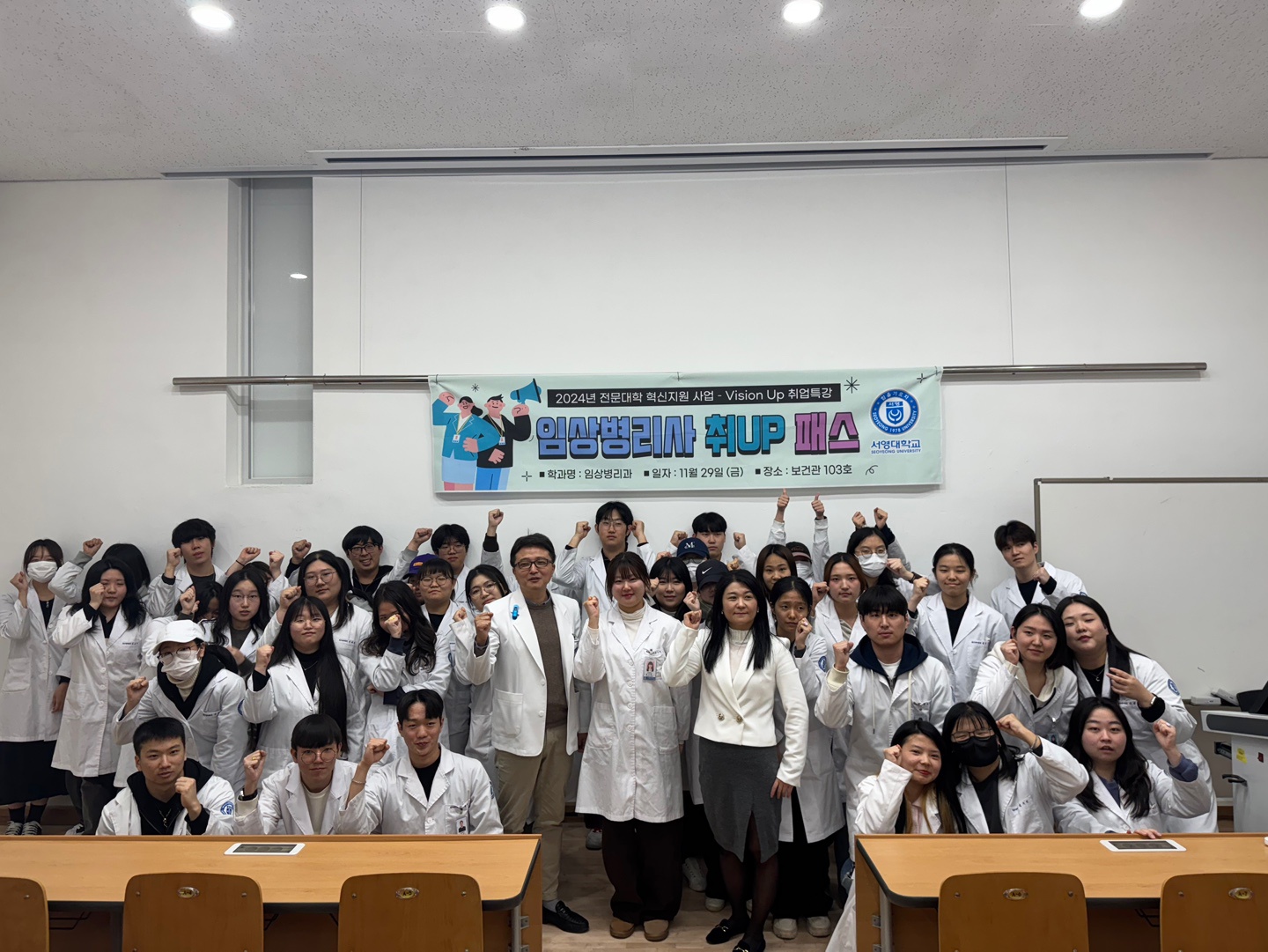 이 날, 1학년 재학생들은 비의료기관 스타트업에서 임상병리사의 역할, 다양한 진출할 수 있는 분야에 대해 들을 수 있었습니다. 또한, 예비 임상병리사에게 진로를 선택하는데 있어서 필요한 세심한 조언을 해주셨습니다.