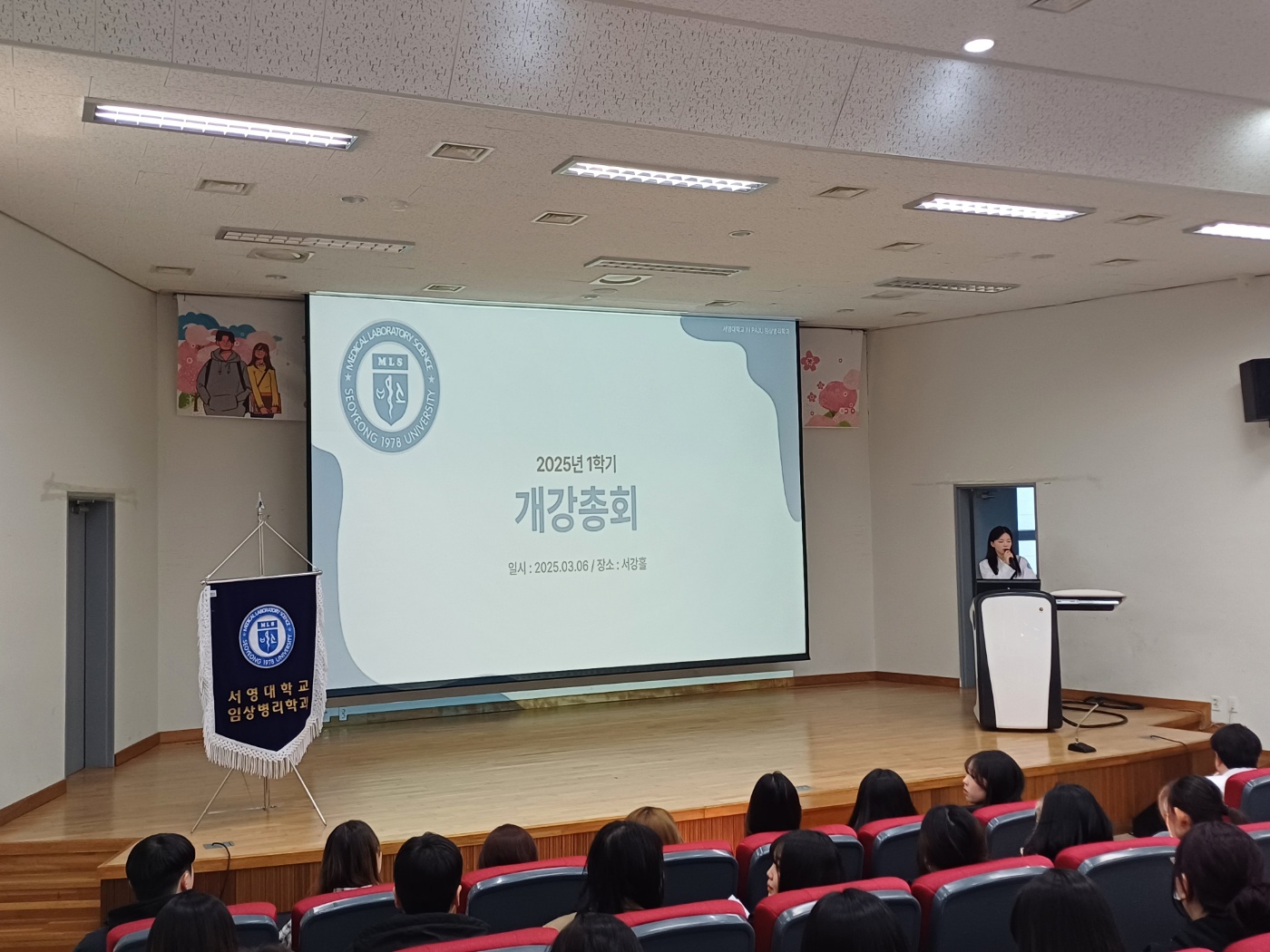 개강총회는 최강임상학생회 김주영 학회장(23학번)의 진행으로 진행되었으며, 이지웅 학과장님이 2025년도 학과 운영 방안을 발표하며 앞으로의 학과 발전 방향과 계획을 공유했다. 또한, 1학기에 진행될 주요 학과 프로그램인 연합 MT, 피트니스 헌혈 캠페인, 화이트가운 세레머니, 프런티어 진단의과학 세미나, 체육대회 등이 소개되며 학생들의 기대감을 높였다.