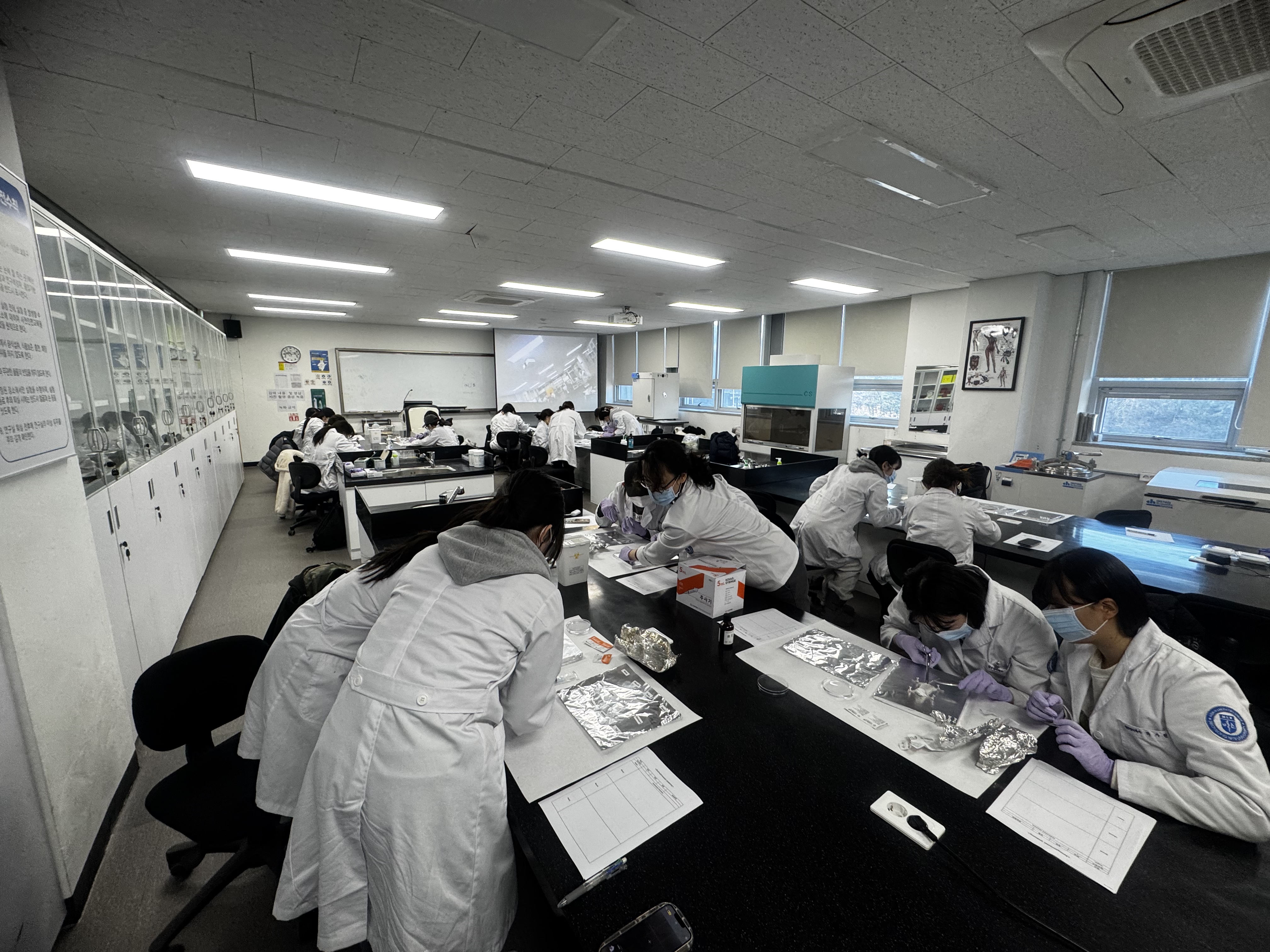 우리 학과는 인체 구조에 대한 이해를 높이기 위해 매년 마우스 해부 실습을 실시하고 있으며, 올해도 인체와 해부학적 구조가 유사한 마우스의 장기 구조를 실제 해부를 통해 확인하는 과정을 중심으로 교육이 이루어졌다. 실습은 먼저 생명의 소중함을 되새기고 실험동물의 희생을 기리는 묵념으로 시작되었으며, 이어 2인 1조 팀별 실습 방식으로 학생들이 직접 해부를 수행하였다.
