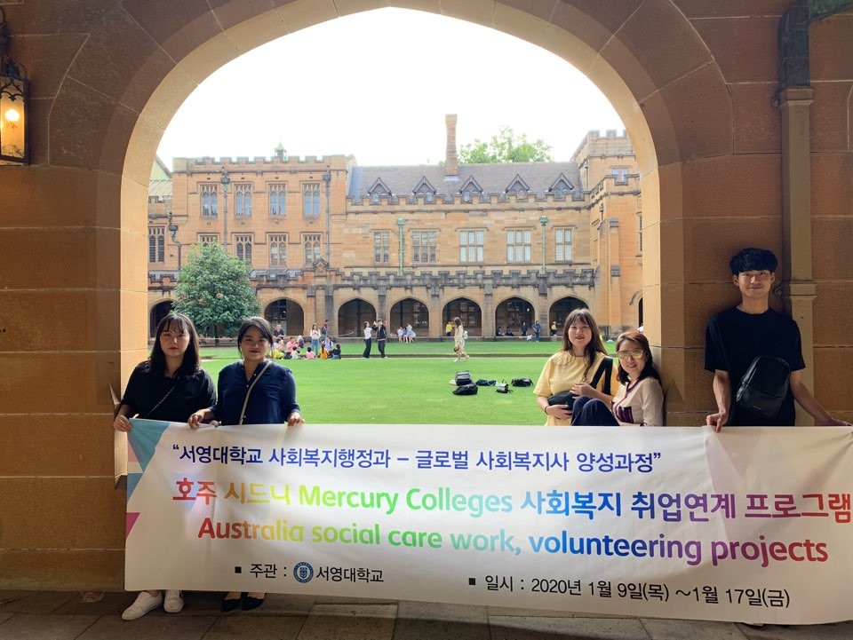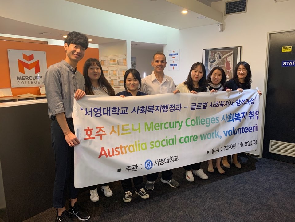 사회복지행정과(학과장  김효선)는 다문화 사회복지 전문가를 배출하는 "글로벌 사회복지사 양성과정" 프로그램의 일환으로  2020년 1월9일부터 17일까지 호주 시드니 Mercury Colleges 에서 Study Tour를 진행 하였다.
