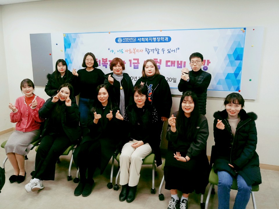 사회복지행정과에서는 2020년 1월 13일부터 2020년 1월 20일까지 파주시 고용복지플러스센터에서 사회복지사 1급 시험 대비 특강을 진행하였습니다.