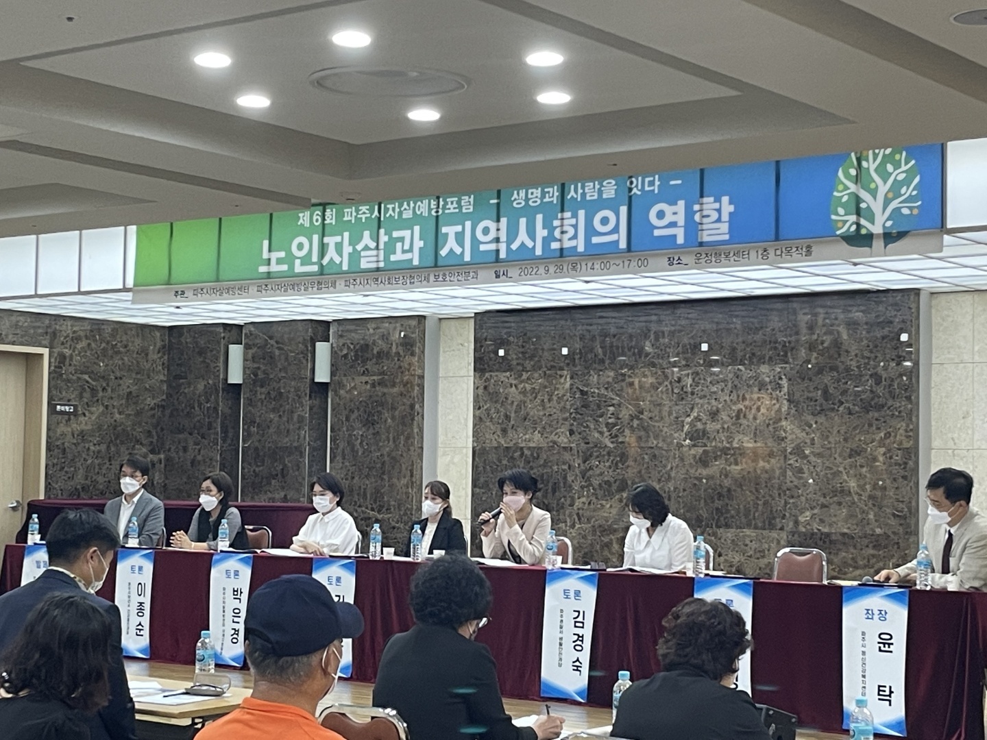2022년 9월29일 운정행복센터에서 개최된 제6회 <생명사랑 자살예방 포럼>에서 자살 현황을 공유하고 자살예방을 위한 지역사회 역할과 과제를 모색하는 시간이 진행되었습니다.