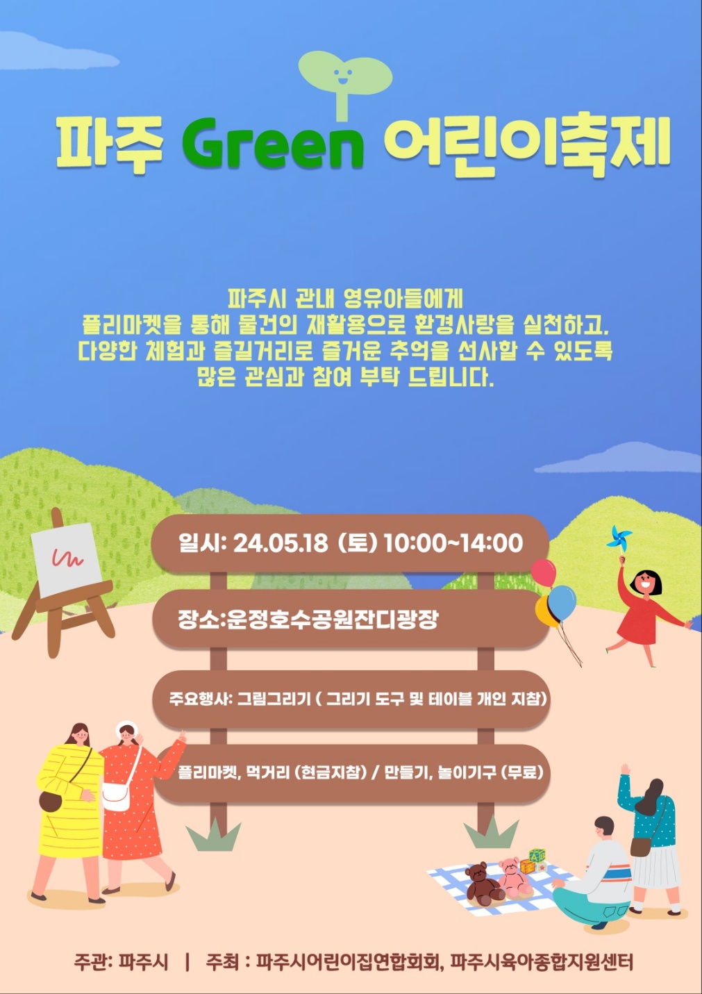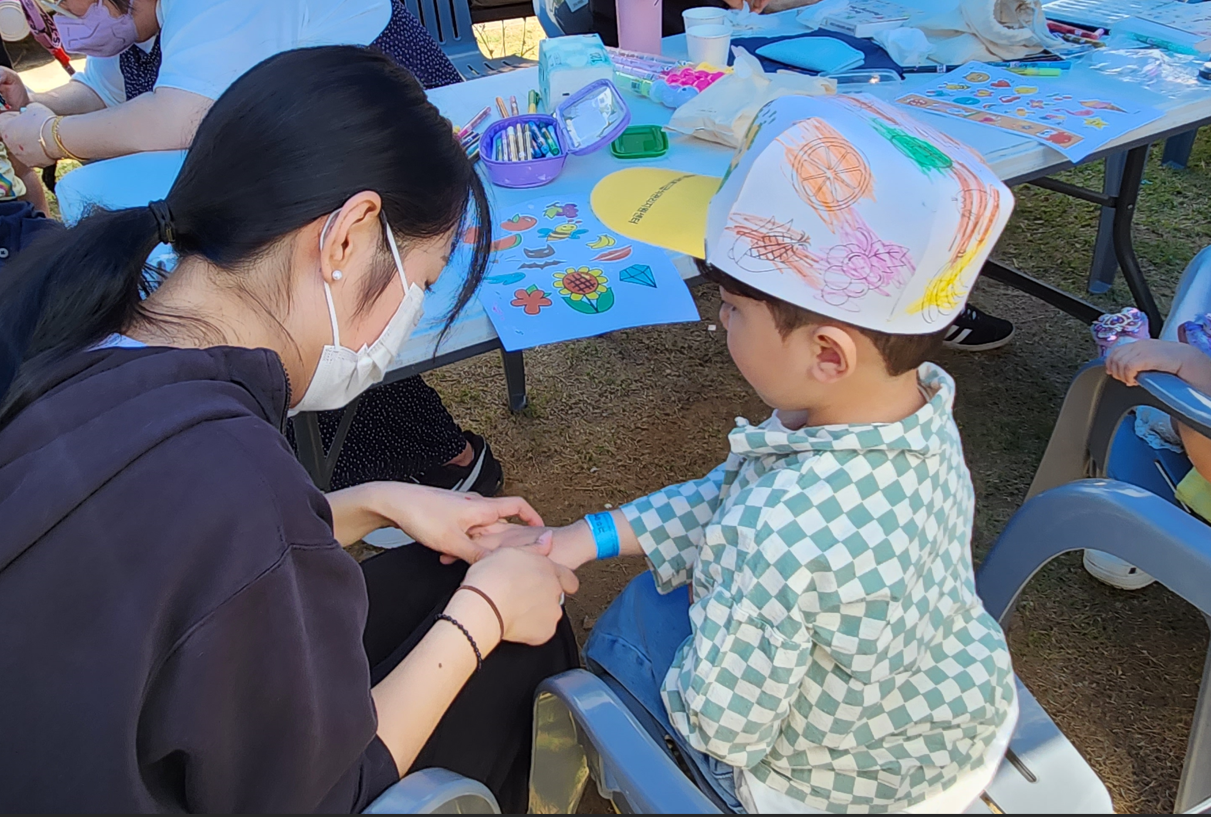 운정호수공원잔디광장 전체를 파주시 관내 영유아들을 위한 체험교육의 장으로 마련하였으며 사회복지행정과는'알록달록 페이스페인팅'이라는 프로그램을 진행하였습니다.