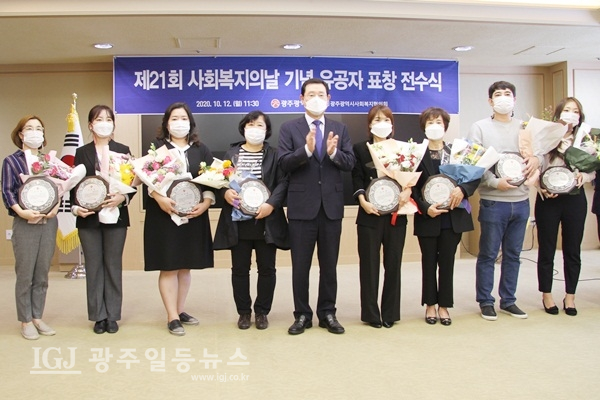 이날 이용섭 광주광역시장은 사회복지현장 등 복지일선에서 노인·장애인·아동 등 사회적 약자에 대한 복지서비스 제공, 생활안정, 자립지원 등에 노력한 김선아 동구청 복지정책과복지기획계장, 김보라 동구 복지정책과 주무관, 김별아 광산구하남동주민센터주무관, 안경희, 국세란, 장미나, 유정임, 이재욱, 유한아, 조윤아, 김나연 복지시설종사자에게 광주광역시장 표창패를 수여했다. 행사에는 박향 광주광역시 복지건강국장, 류미수 광주시사회복지과장, 조명수 광주시복지정책담당사무관 등이 축하를 전했다.