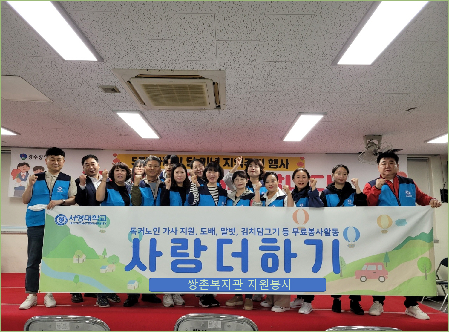 사회복지과 봉사동아리 "사랑 더하기"에서는 5월 가정의 달을 맞이하여 쌍촌종합사회복지관에서 지역사회 이웃들과 소통하고 공동체를 형성하고자 지역사회 봉사활동을 진행했습니다.