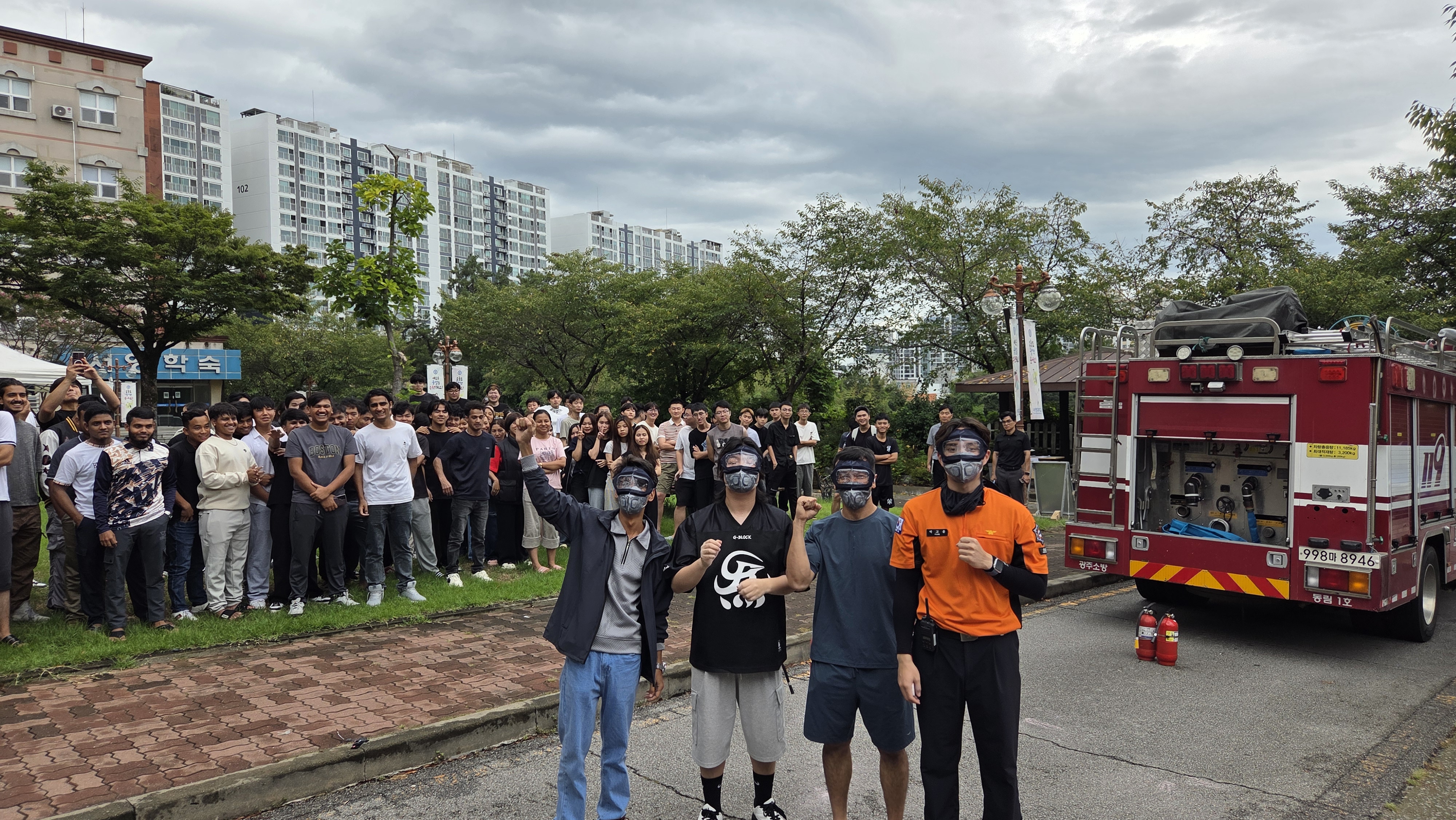 ○ 이번 훈련은 교내 기숙사에 거주하는 국내 재학생과 외국인 유학생이 함께 참여했으며, 소방대원의 소방안전교육, 기숙사 대피훈련, 방연마스크 착용 실습, 소화기 사용 실습 등으로 진행됐다.