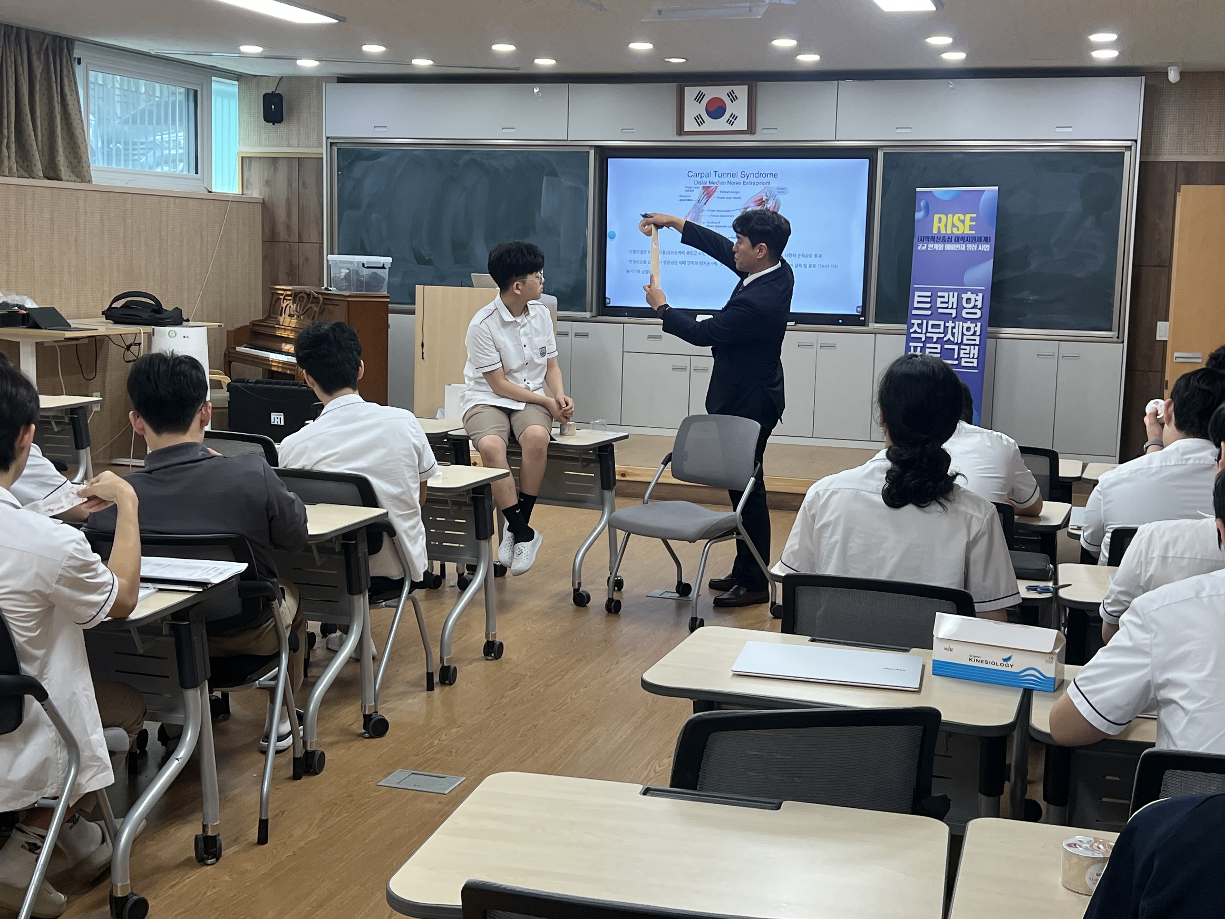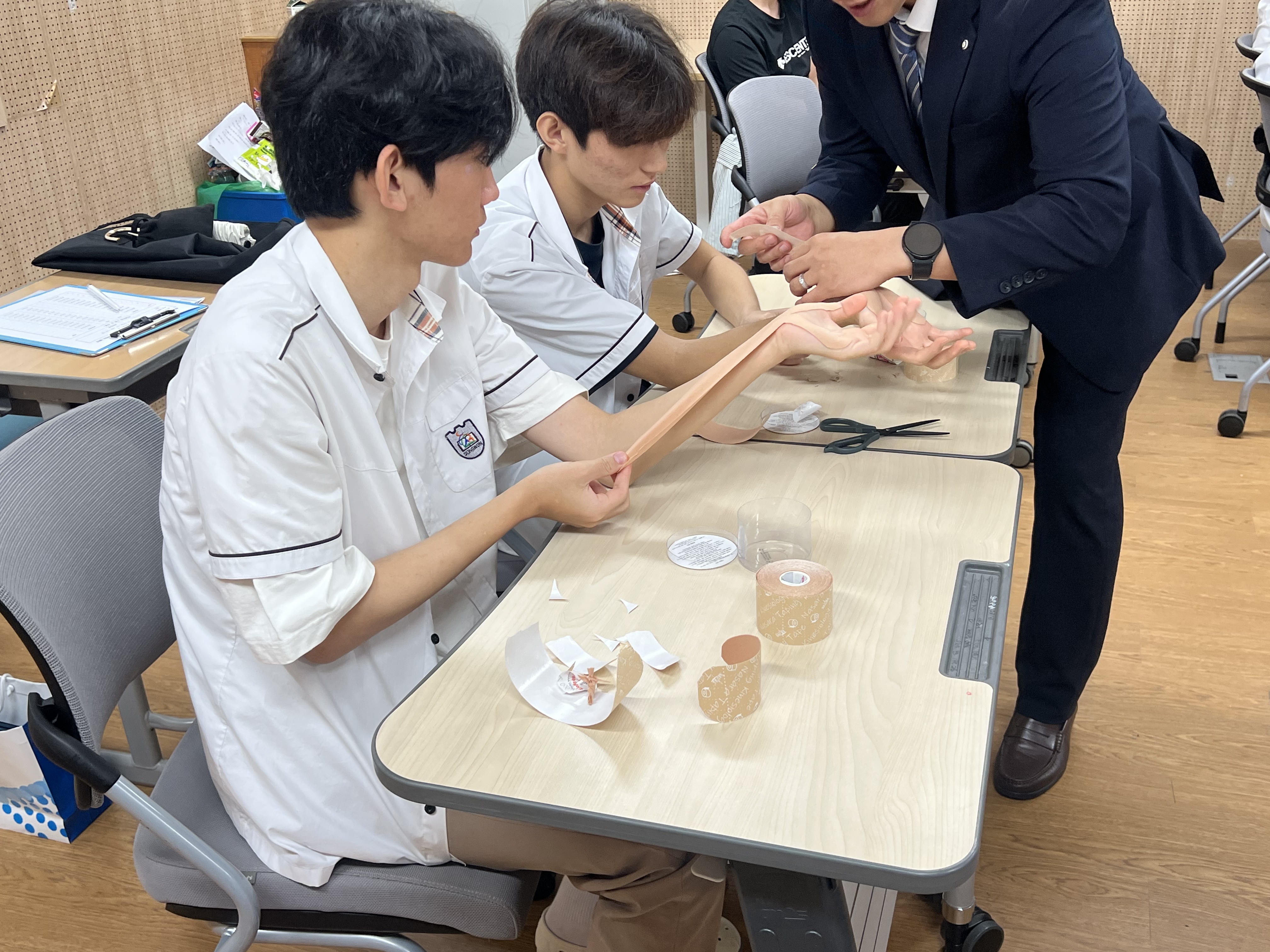○ 참여 학생들은 스포츠 테이핑을 직접 체험해보고, 보행 보조 로봇을 착용해 봄으로써 물리치료사의 업무와 전문 분야를 배우고, 움직임 전문가로서의 역할을 이해했다.