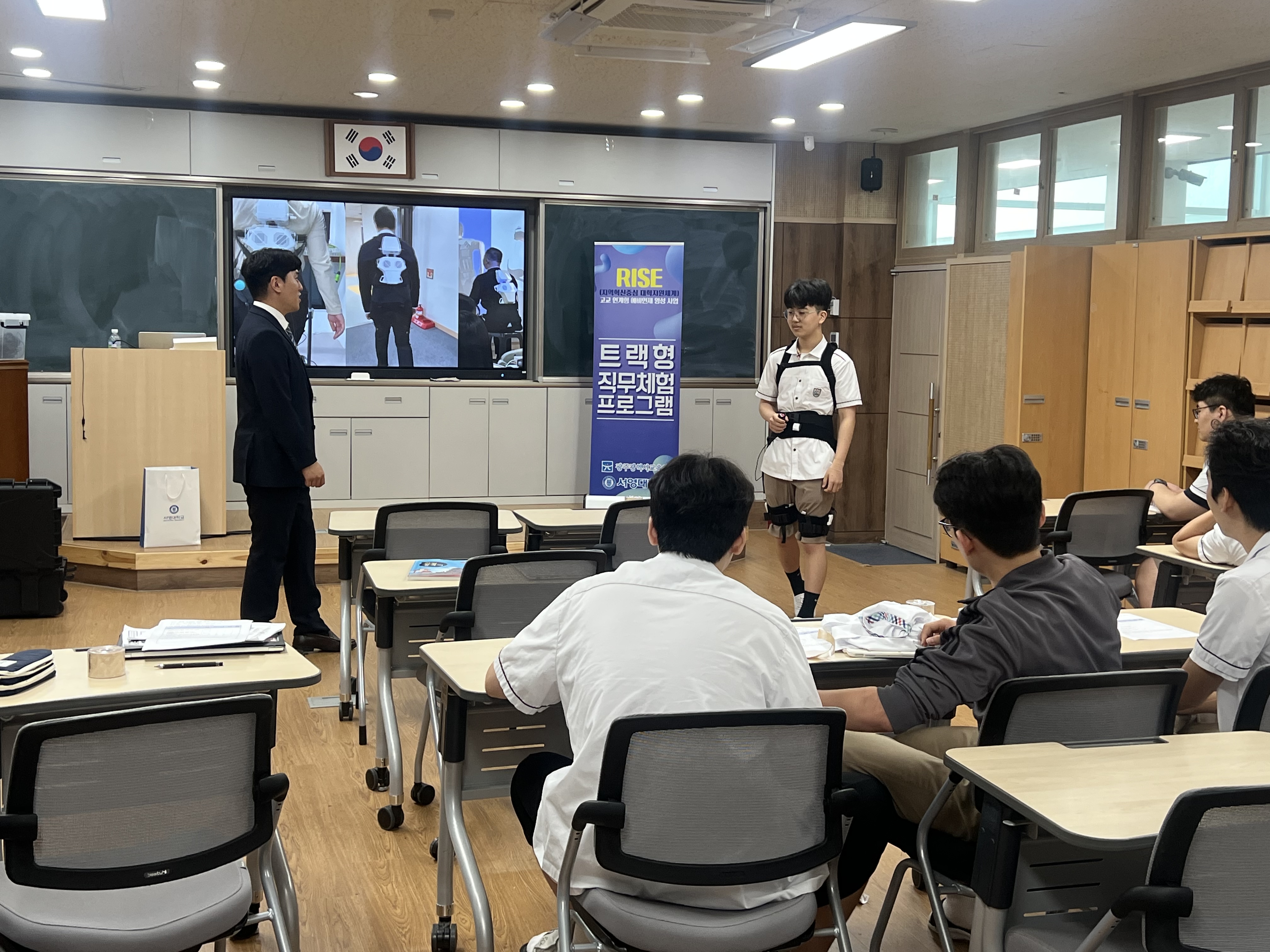 ○ 이날 서영대 물리치료과에서는 ‘내 걸음으로 만드는 로봇 보행 치료’를 주제로 한 체험 수업이 열렸다.