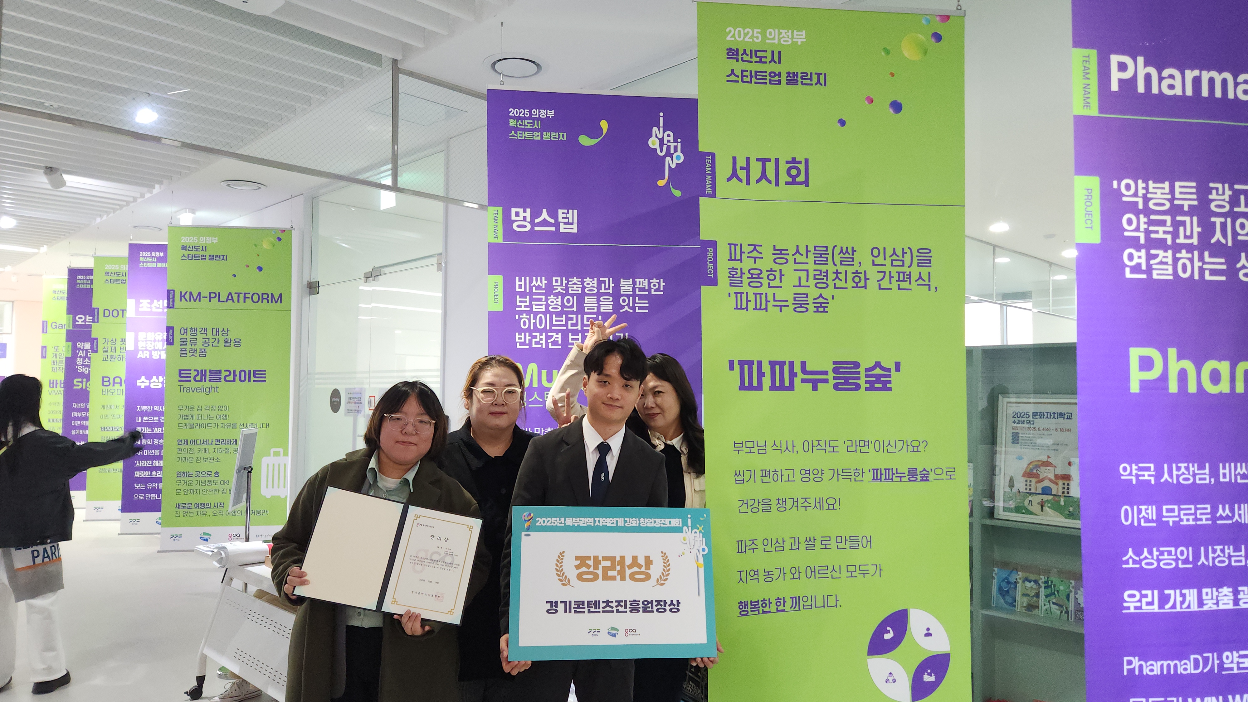 O. 우리대학(총장 김정수) 사회복지행정학과(학과장 김효선) 소속팀 ‘서지회’ 학생들은 11월 14일(금) ‘2025 북부권역 지역연계 강화 지원 학생 부문 창업경진대회’ 에 참가하여 장려상을 수상하는 성과를 거두었다. 경기콘텐츠진흥원이 주최하는 창업경진대회는 경기북부 지역 대학생들의 문제 해결형 창업 아이디어 개발 대회이다.